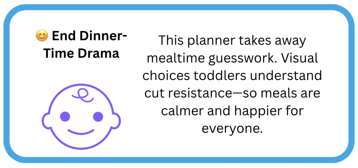 A simple, visual food planning system that helps toddlers eat better, reduce mealtime battles, and build lifelong healthy habits.