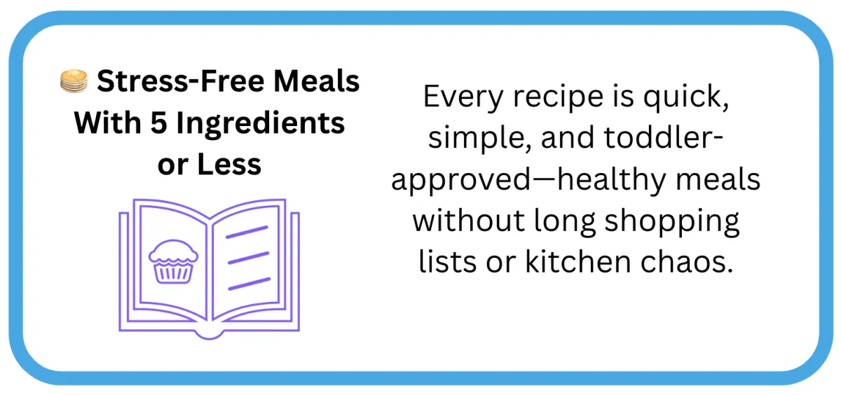 All recipes are toddler-friendly, use 5 ingredients or less, and are fast to make.