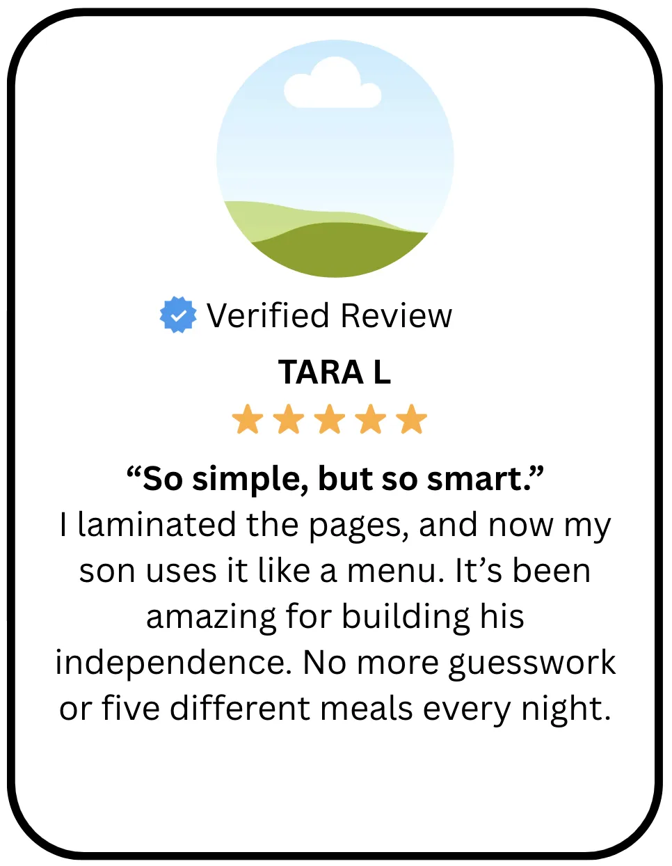 It’s a printable, visual food planning system made just for toddlers. It includes hundreds of real food images categorized by meals and food groups, helping your child make healthy choices and easing the stress around mealtimes.